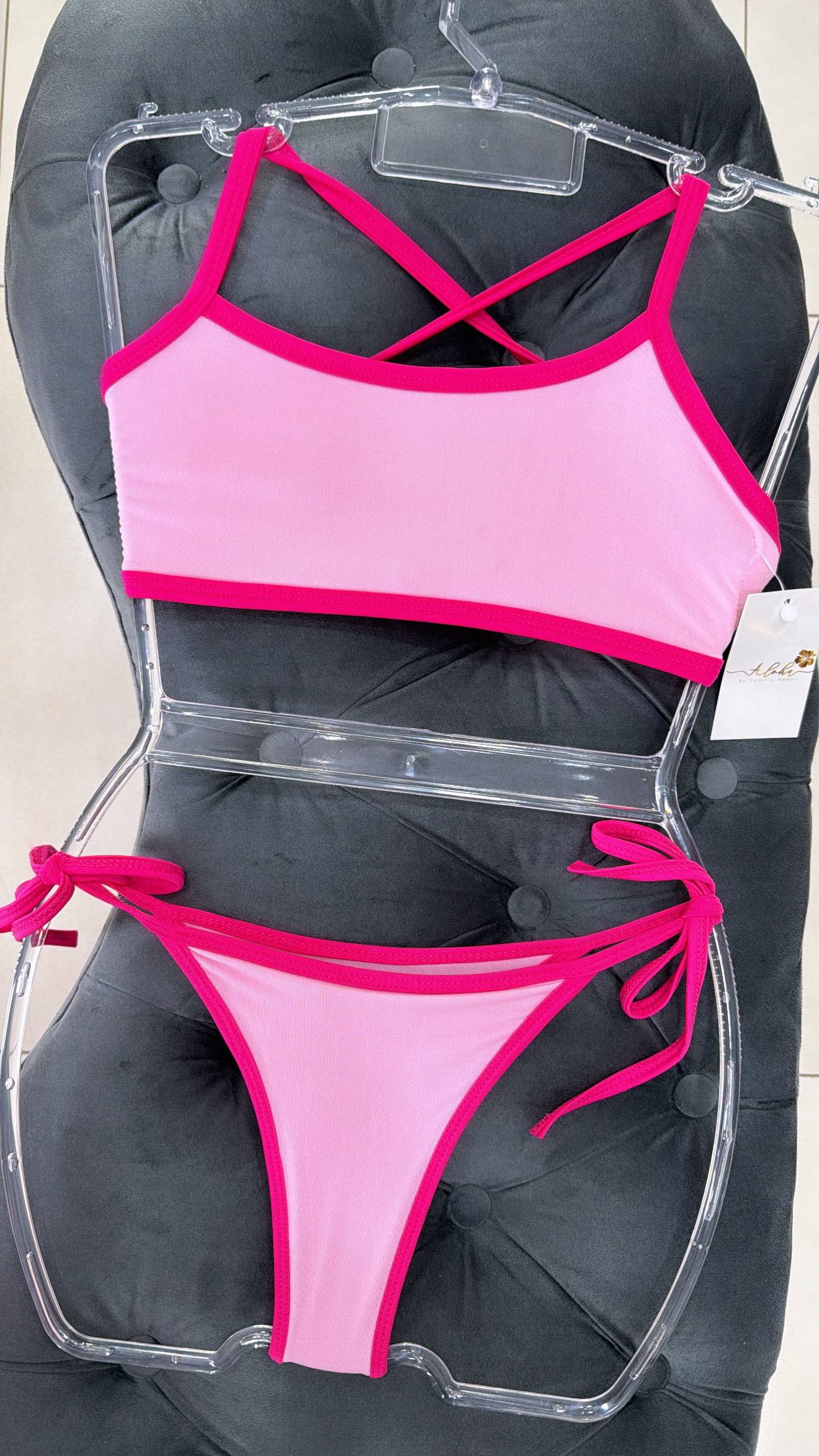 Biquíni Cropped Bicolor Rosa