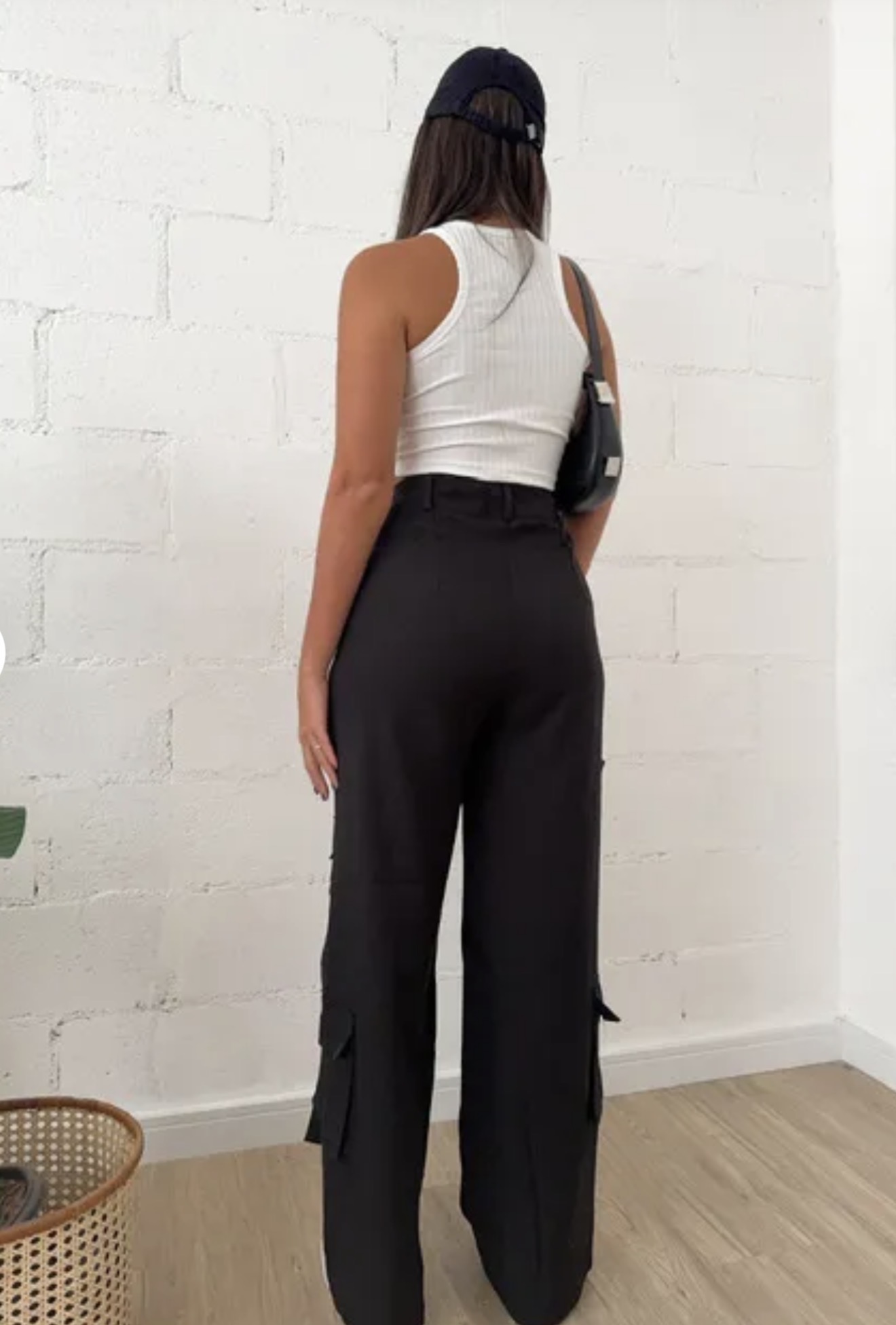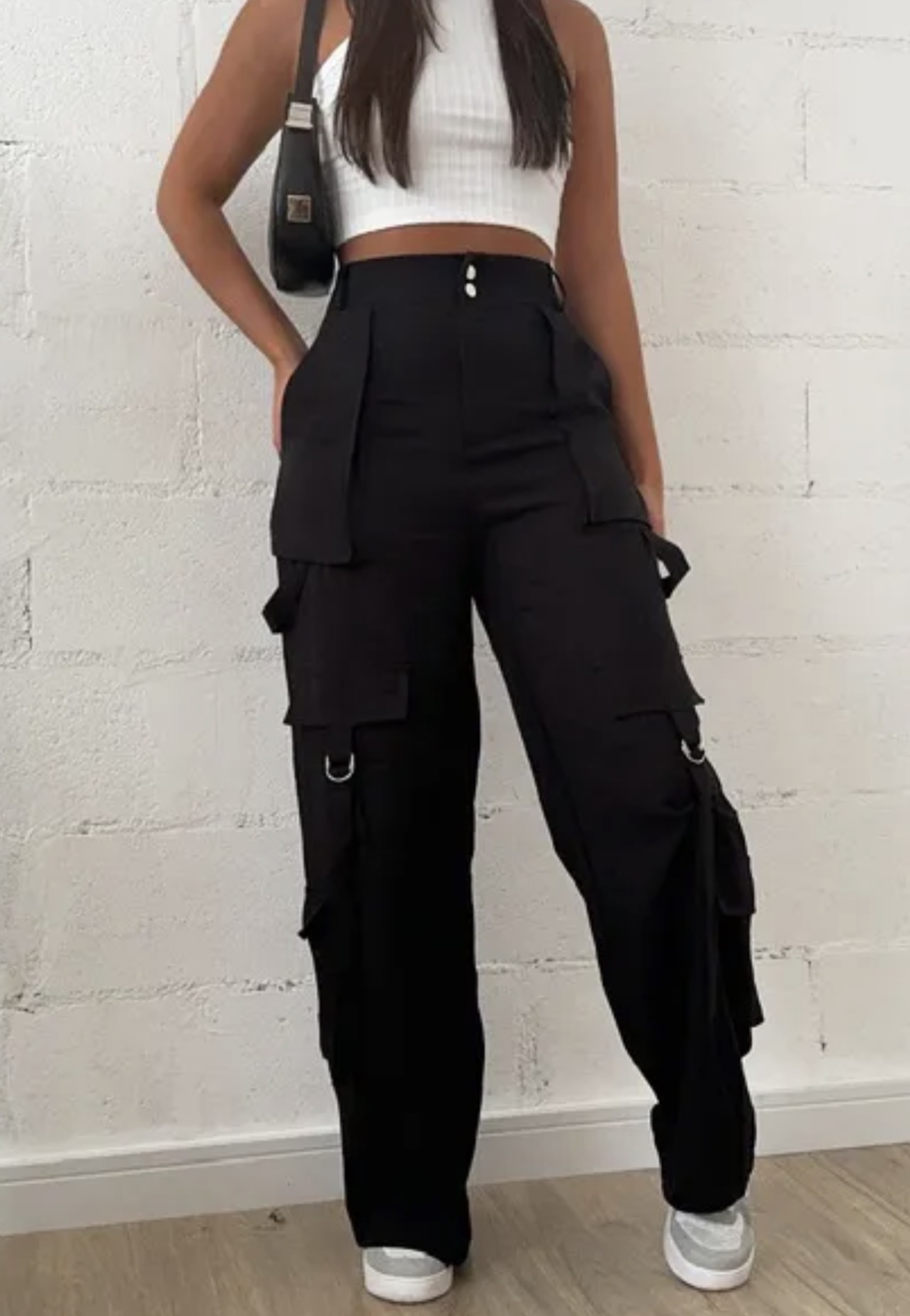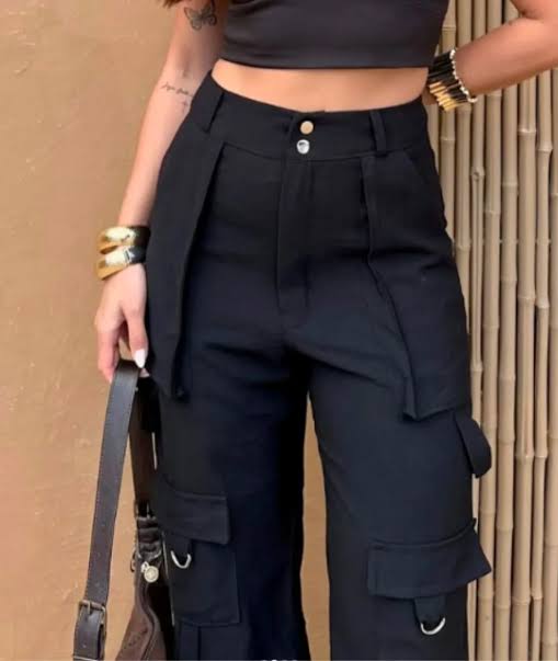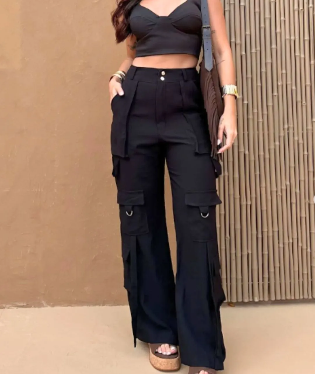 Calça Wide Leg com Bolsos Preta