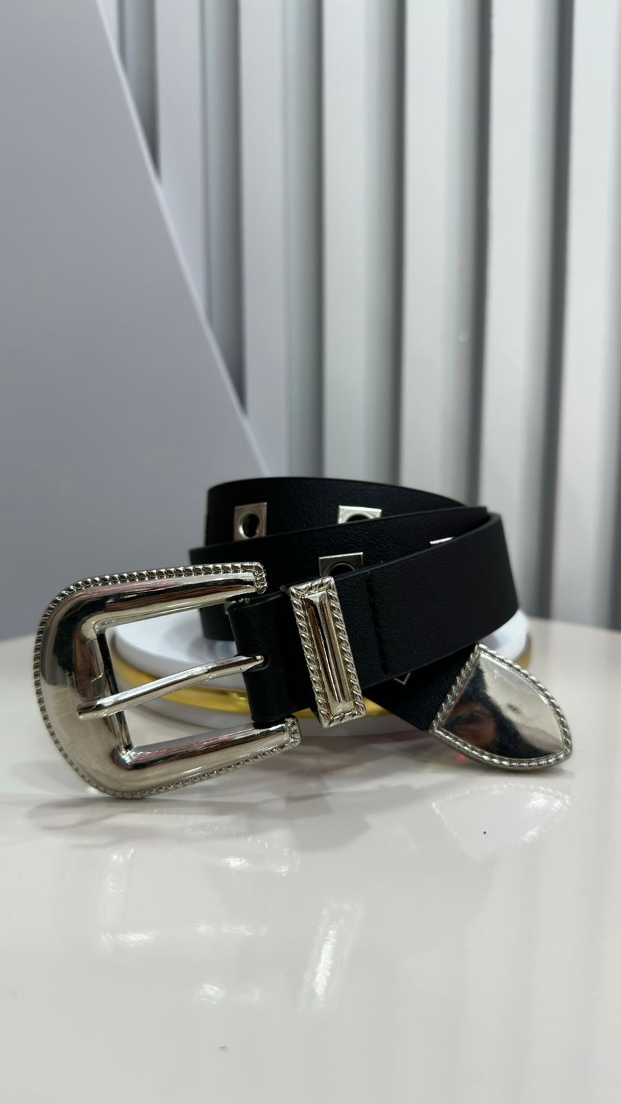 Cinto Preto Detalhes Quadrados Prata