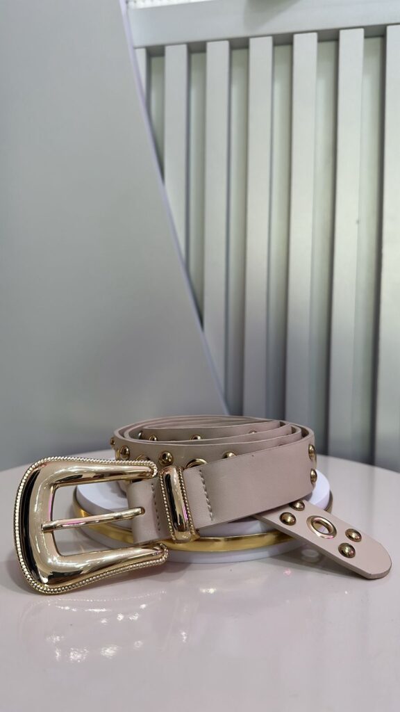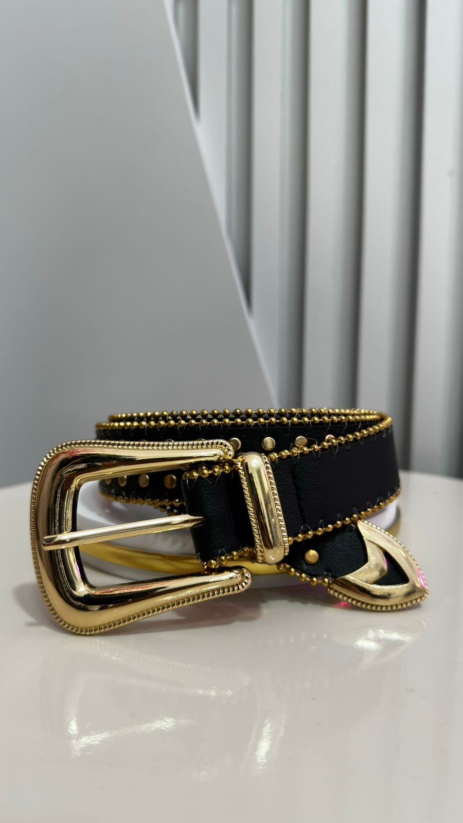 Cinto Preto Tachinhas e Bolinhas Dourada Fivela Lisa