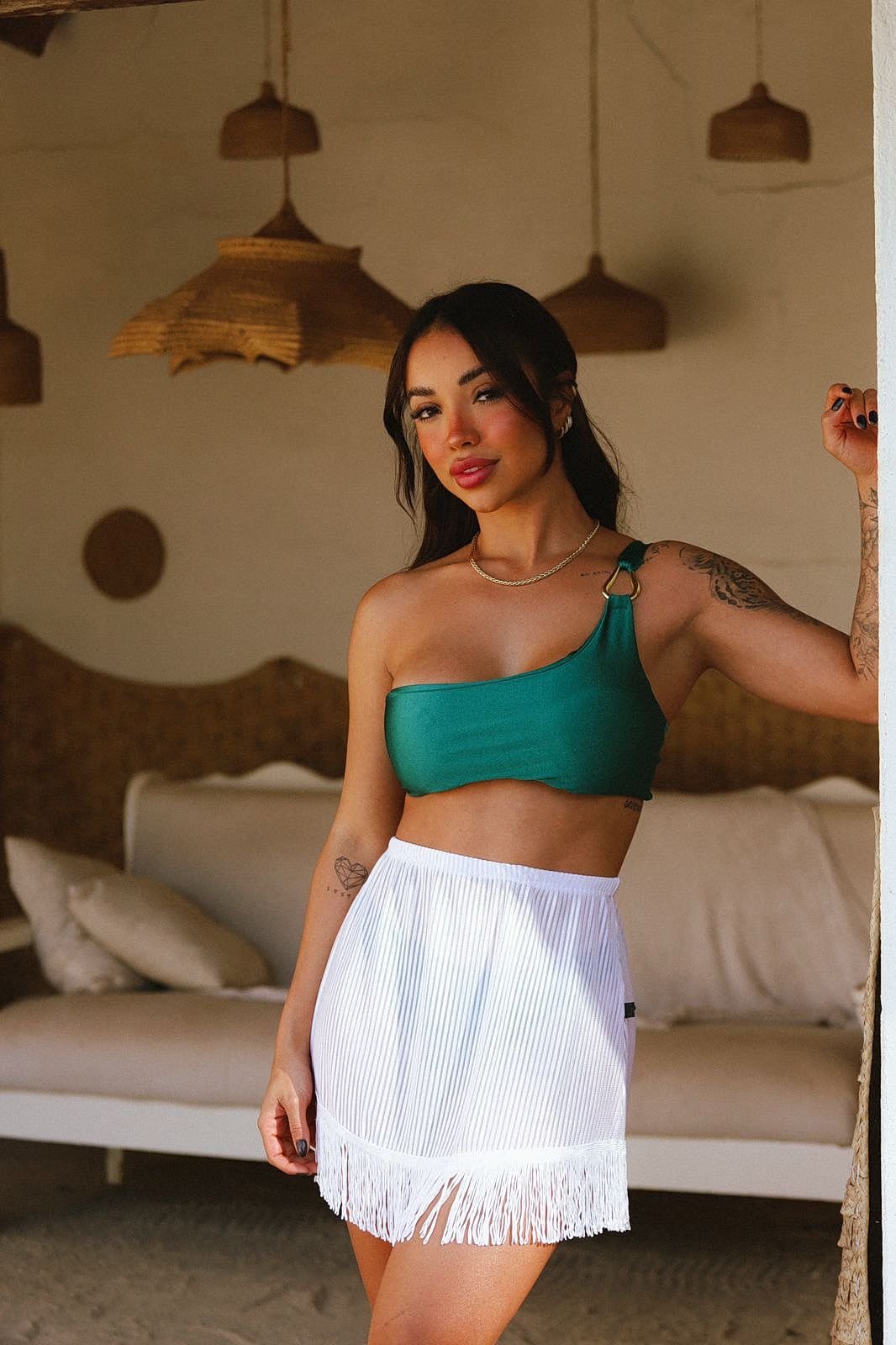 Saia Saída De Praia Franjas Branca