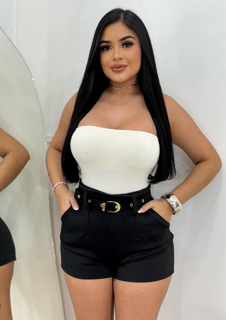 Shorts Neoprene Com Cinto Preto